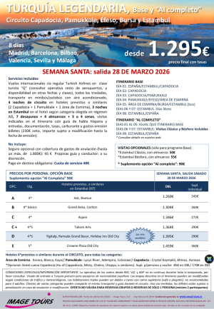TURQUiA Legendaria , salida 28 marzo *Semana Santa 2026*. Circuito desde Capadocia. 8ds desde 1.295€ tax incl.