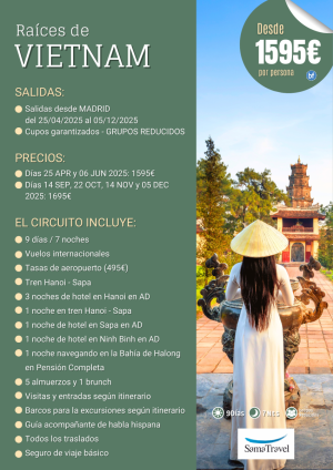 "Raíces de VIETNAM y Sapa": circuito 9 días - cupos garantizados [Desde MAD] 14mar - 05dec25 **desde 1.695€**